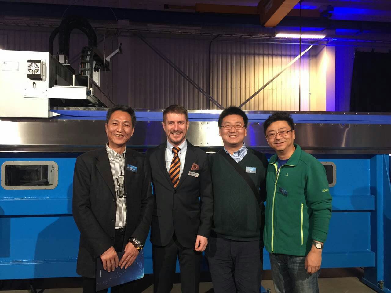 我司总经理徐健和销售总监尉喆陪同两位尊贵的中国朋友参加了此次活动。毫无疑问我们成为了活动的焦点,因为当天展示的5轴设备为中国客户购买,最新的T系列设备也将在中国4月份的CCMT2016展会亮相。